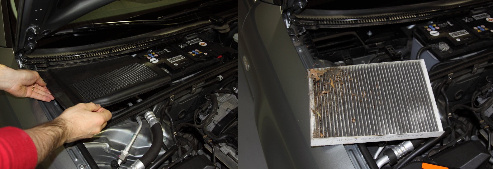 - Obecně se doporučuje kabinový filtr měnit ale každých 10.000 km. Optický stav zde není ukazatelem! Pokud svěříte svůj vůz do servisu, máte vystaráno. Pokud si chcete udělat výměnu sami, není to nic složitého. Kabinový filtr se téměř vždy fyzicky nachází poblíž přihrádky spolujezdce (pod ní, za ní apod.) nebo ve stejných místech, ale přístup k němu není z kabiny, ale ze strany motoru – viz foto.