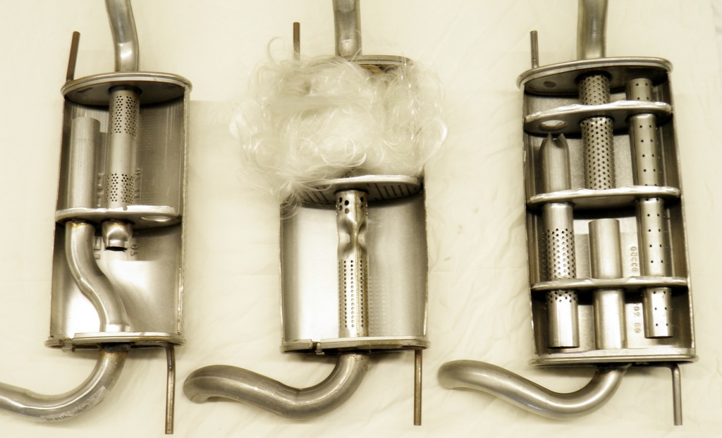- Mechanická část x vata – použití mechanické vnitřní konstrukce je téměř vždy lepší, ale významně dražší. Alternativou je homologované syntetické vlákno, které používají i samotné automobilky. Někteří výrobci výfuků, ale stále používají karcinogenní skelné vlákno!
